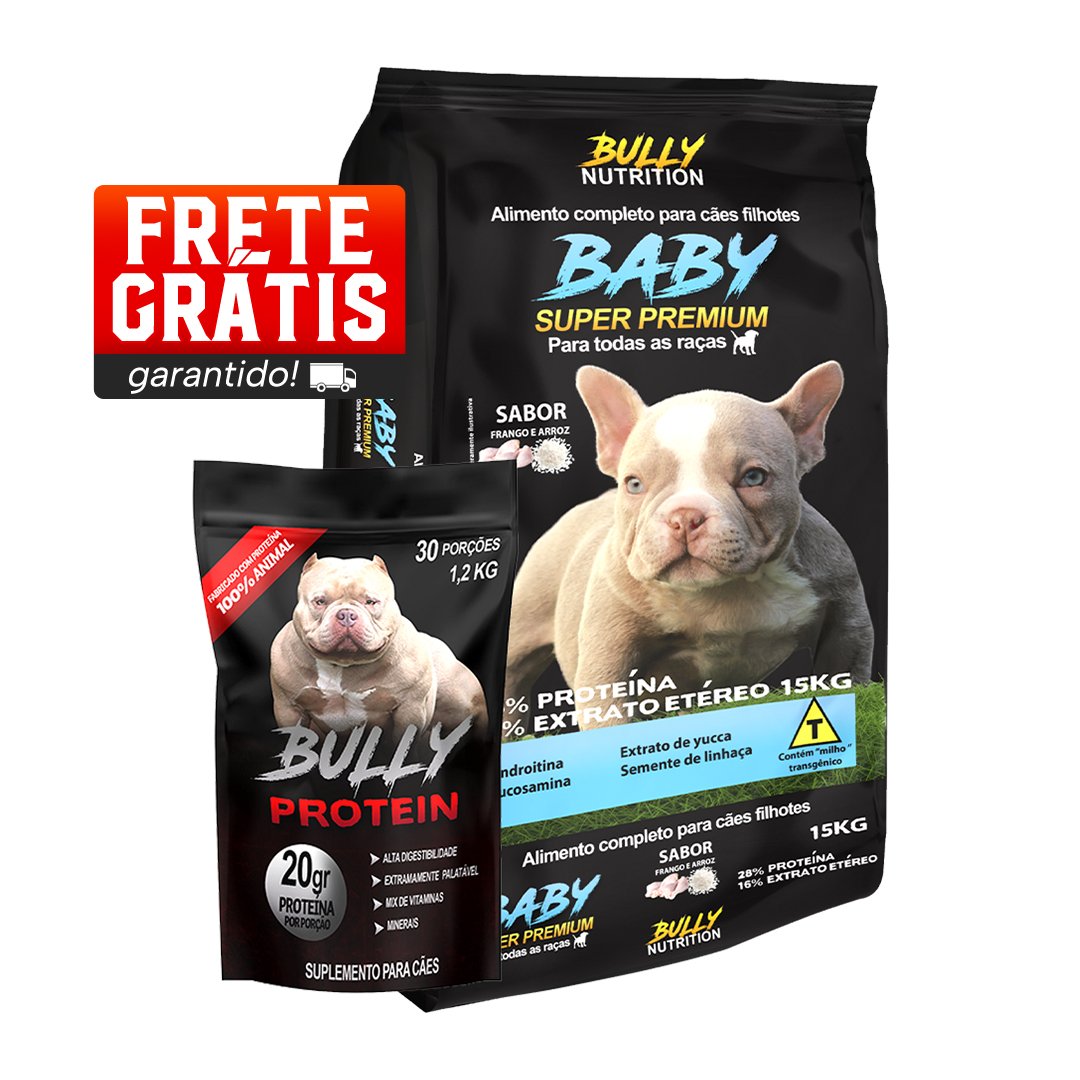 Ração Baby Super Premium + Suplemento Bully Protein 1,2Kg Cachorro Forte