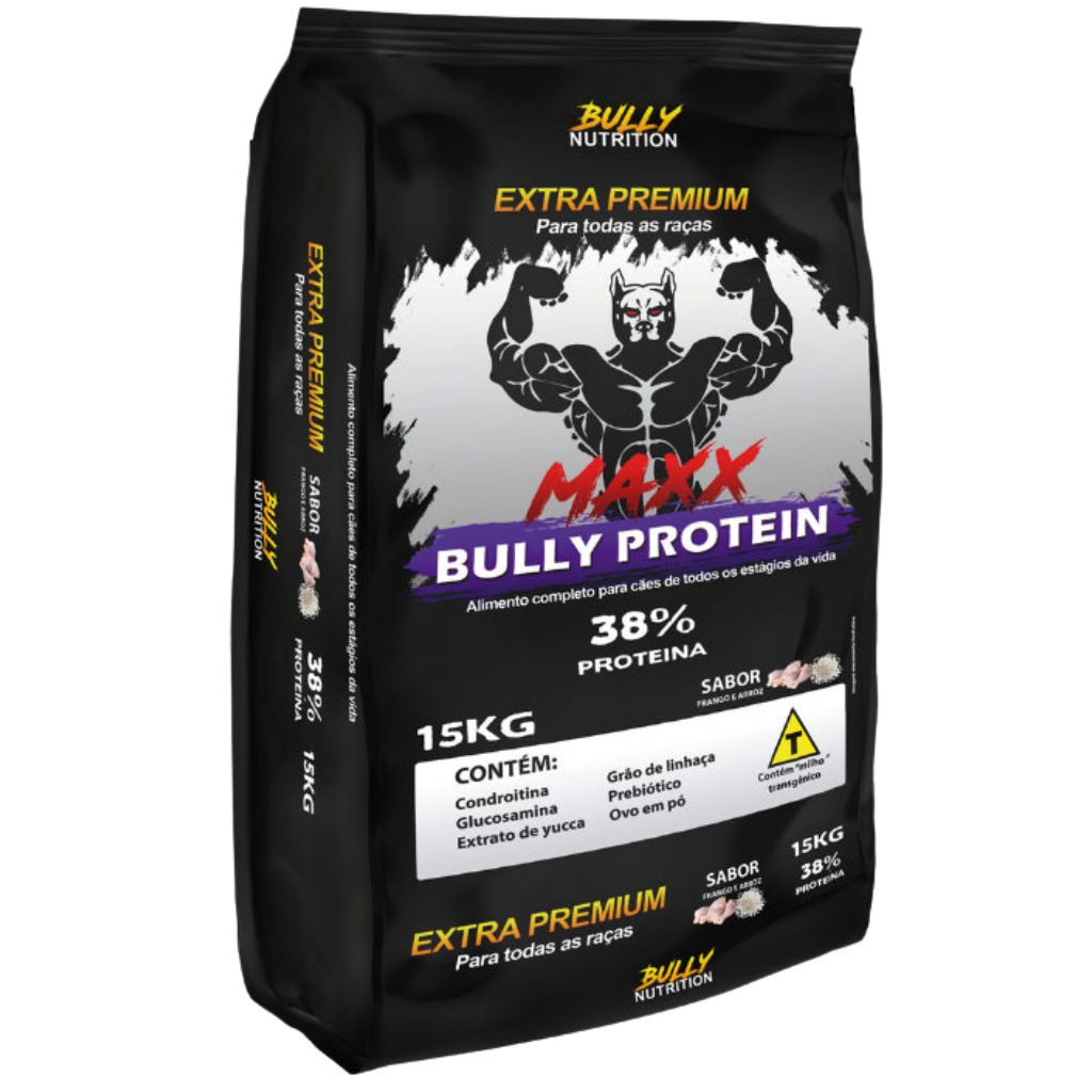 Ração Maxx Bully Proteín 38% frango e arroz sem corantes 15 Kg Cachorro Forte